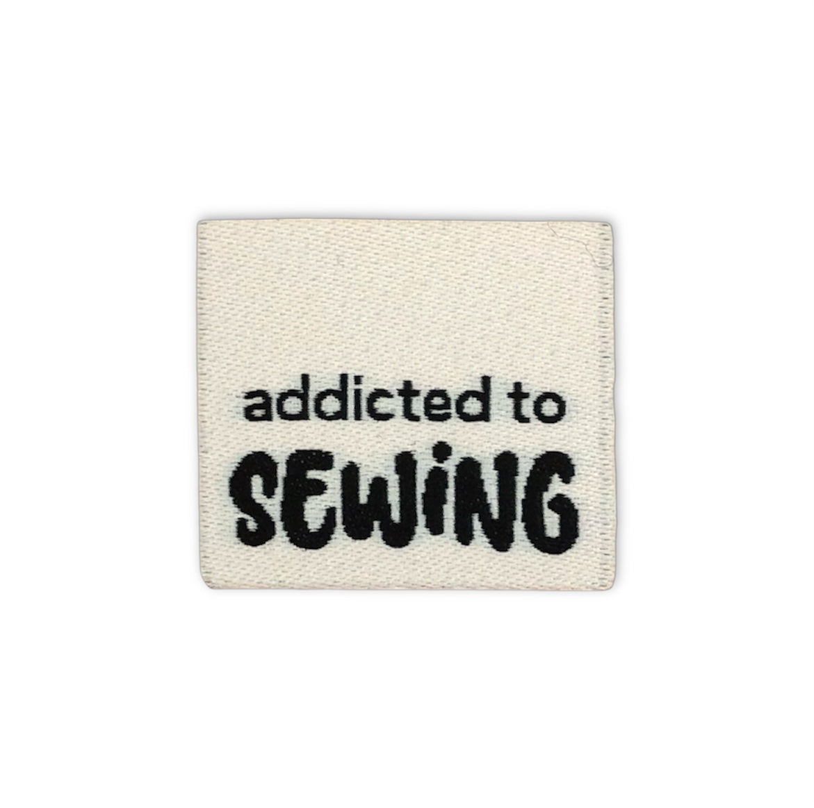 Set of 3 woven labels “Addicted to Sewing”